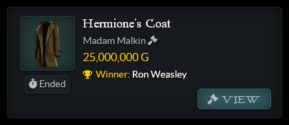 Auctions are an exciting way to buy and sell items for Galleons as users try to outbid each other in real time. The Auctions page can be found in the left sidebar under the Economy section. Head over quickly, because the item of your dreams might already be going... going... gone!
